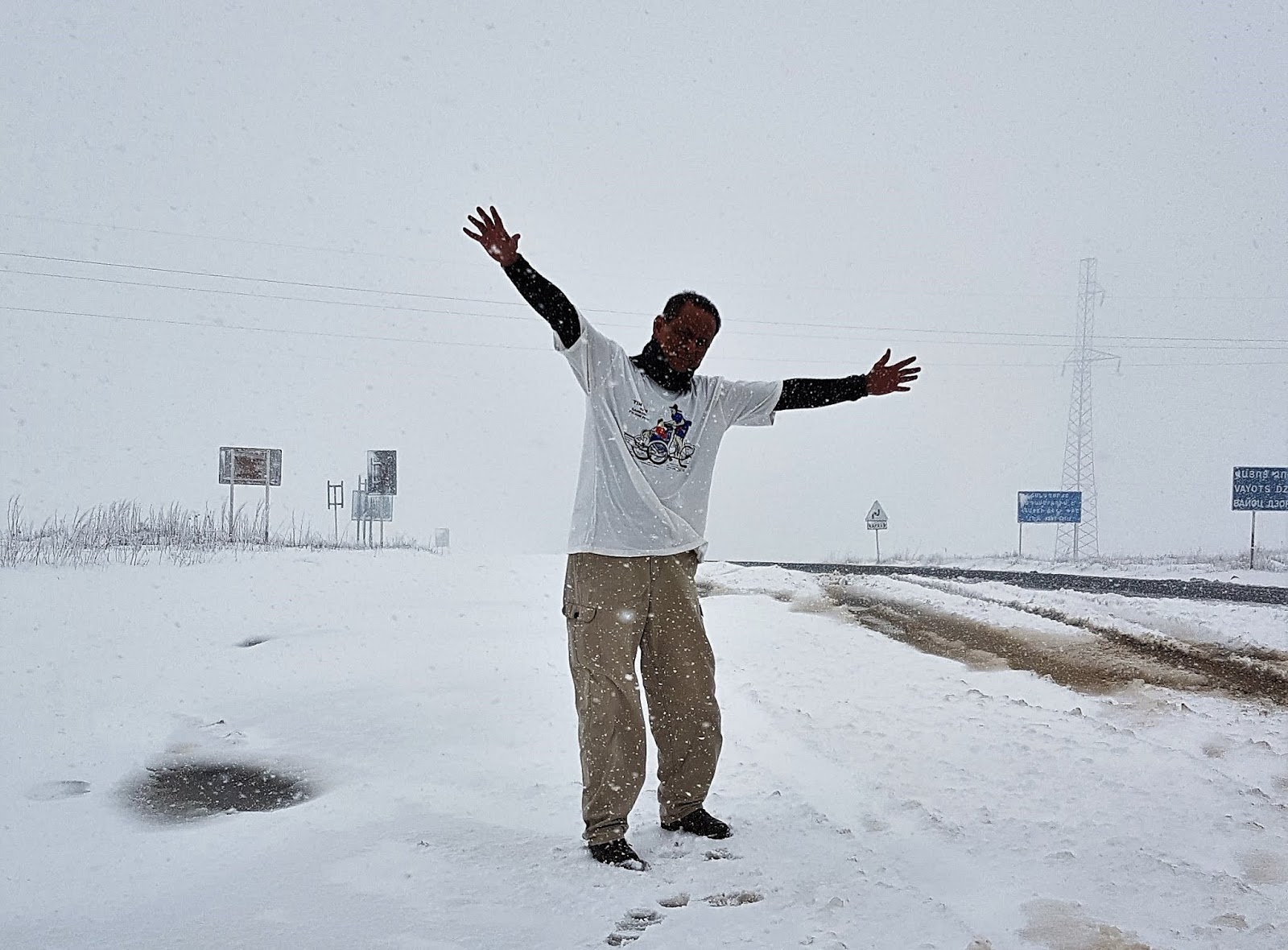 The old van was stalling on and off all the way and finally made a complete stop at Ojax coffee shop at Sissian. It was snowing heavily and the weather was chilly to the bone. After toilet break, we warm ourselves with a hot cup of coffee listening to local music while waiting for the stalling engine to be fixed.