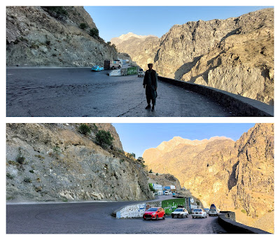 The road is about 152 km long and travels downwards from an elevation of 1790 m in Kabul to 575 m in Jalalabad. Because of the many traffic accidents, the road between Kabul and Jalalabad is considered one of the most dangerous in the world. It consists of narrow roads with sharp turns past high cliffs and a valley of the Kabul River below, with which it runs parallel. It is a large part of the Afghan leg of the Grand Trunk Road. Stopped at a view point for photo opportunities of the scenic view.