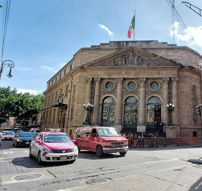 On the way back to the hotel we saw a protest parade along the road. Protest is a constant in Mexico City, the seat of the federal government and thus a focal point for angry, disgruntled and dissatisfied citizens from around the country. As the National Palace - the seat of executive power and now the president's residence as well - is located opposite the Zócalo, the central square is the most popular place for demonstrations, and many protest marches end there after commencing in other central parts of the capital.