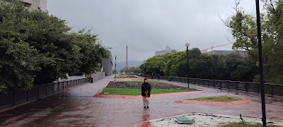 | (Walking in the rain at the Macroplaza or Gran Plaza) |